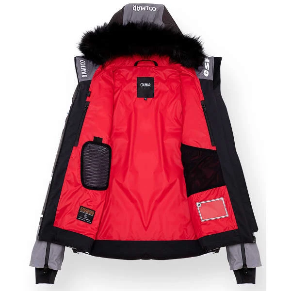 Waterproof ( 15 000 mm) and breathable (15000 g), this jacket is composed of a mechanical stretch fabric and a printed pattern with an exclusive 100% recycled polyester. It also has a soft lining and a recycled polyester lining Thermore Ecodown with 100% post-consumer recycled fiber that provides good heat dose. In addition to the recycled content is added a water repellent treatment EcoElite in the Colmar Green Path project to respect the environment.