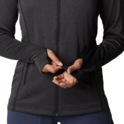 In addition to being soft and warm, the fabric combines sun protection and moisture wicking with Omni-WICK and Omni-SHADE technologies. The feminine fit ensures ease of movement, especially since the fabric is stretchy, while the full-zip construction makes it easy to use.